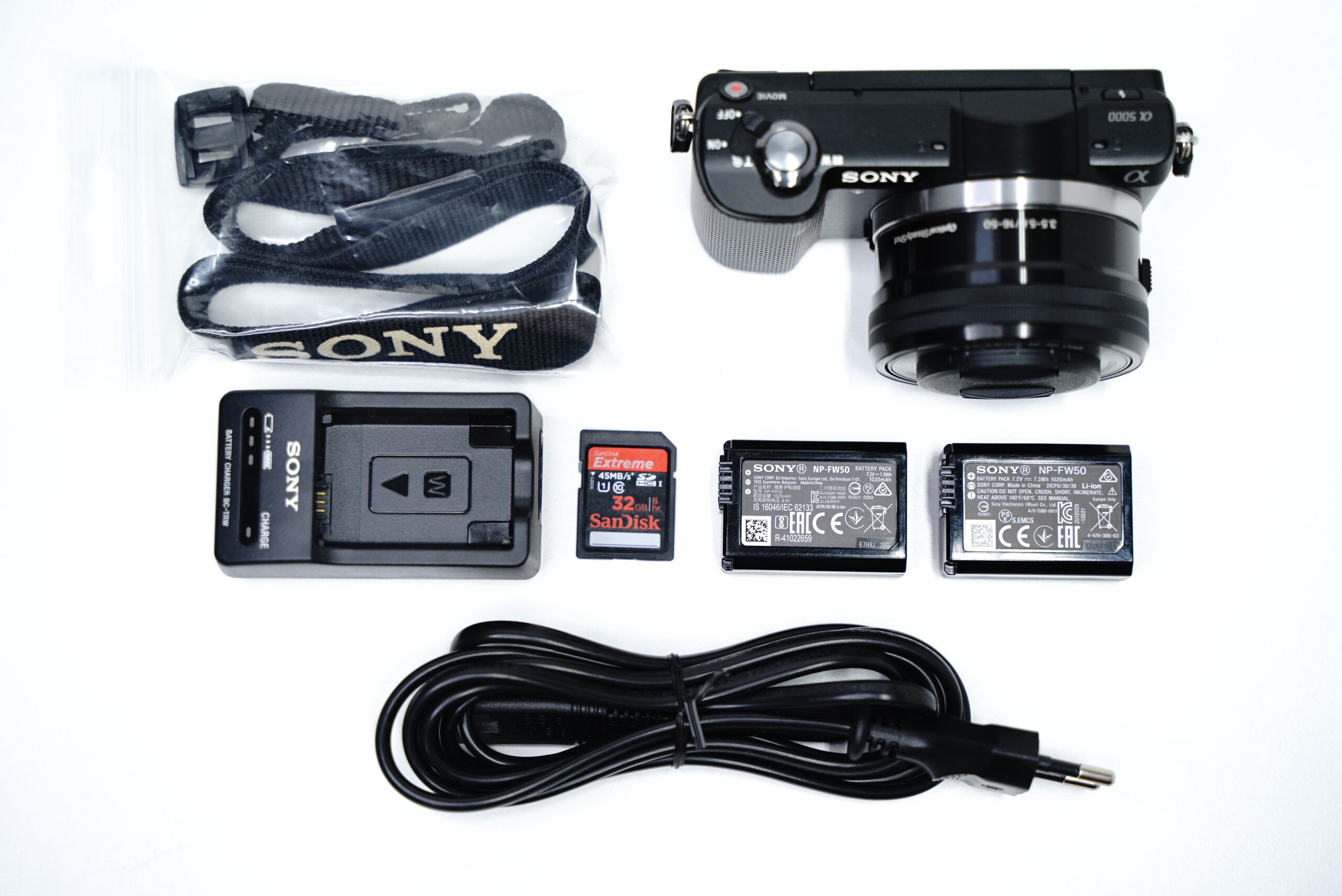 32GB muistikortti, 2 akkua, laturi, laukku, 16-50 objektiivi.